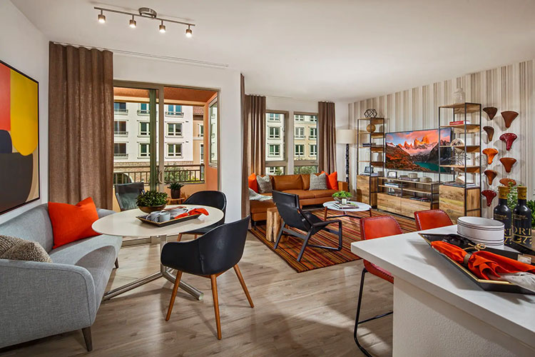 The focus was on providing units that were as quiet as possible for the wood-framed building structures, according to Jeff Troy, Vice President, Quality Assurance, Irvine Company Apartment Development. To accomplish this, the company put together higher acoustic standards for walls and floor/ceiling construction than agencies and other builders require.